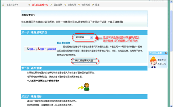 完成在線圖標(biāo)設(shè)置后,在“圖:初始設(shè)置向?qū)?2 ” 上點(diǎn)擊“獲取代碼”,彈出獲取代碼頁: