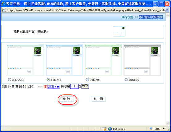 登陸kf000在線客服系統(tǒng)網(wǎng)站,點(diǎn)擊“系統(tǒng)設(shè)置”->“風(fēng)格設(shè)置”->“客戶窗口設(shè)置”,彈出客戶窗口皮膚選擇頁(yè):