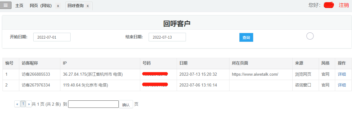 回呼可在“記錄中心-回呼查詢”查看,如需短信提示可聯(lián)系客服開(kāi)通;